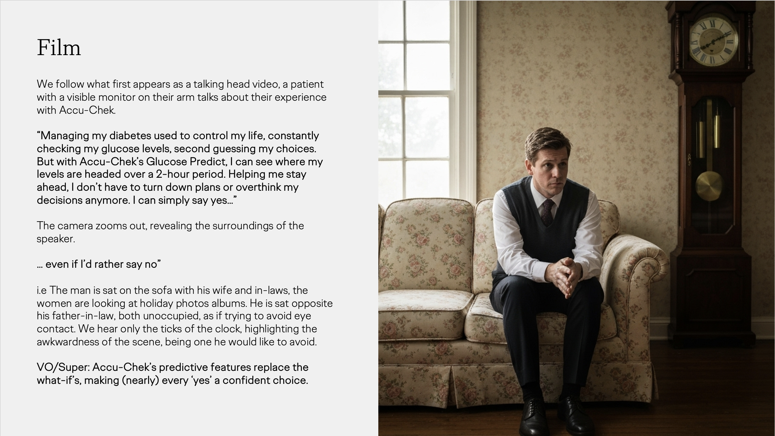 This campaign shows that by allowing Accu-Chek to take on the complexities of glucose management, you can embrace life and truly say yes to everything (except the Christmas pantomime, you can say no to that).